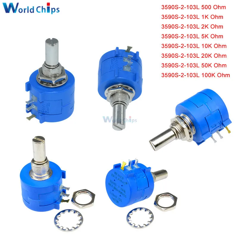 3590S многооборотный потенциометр 500 1K 2K 5K 10K 20K 50K 100K Ом Потенциометр регулируемый резистор 3590 102 202 502 103 + ручка A03