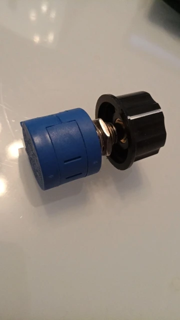 Ручка потенциометра не надевается на ось потенциометра. Диаметр оси потенциометра больше на 0,1 мм.