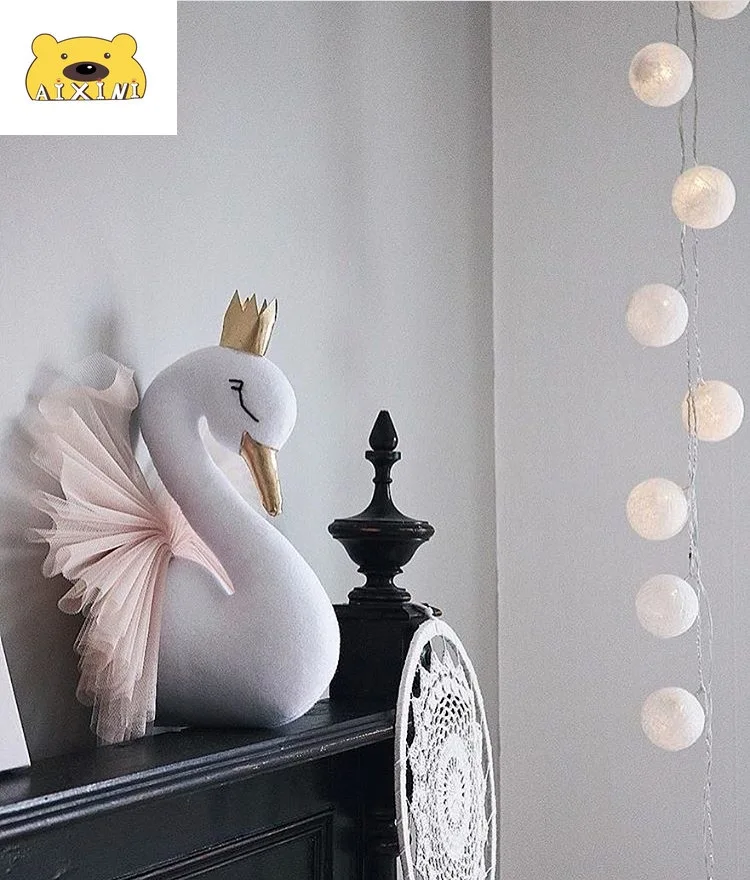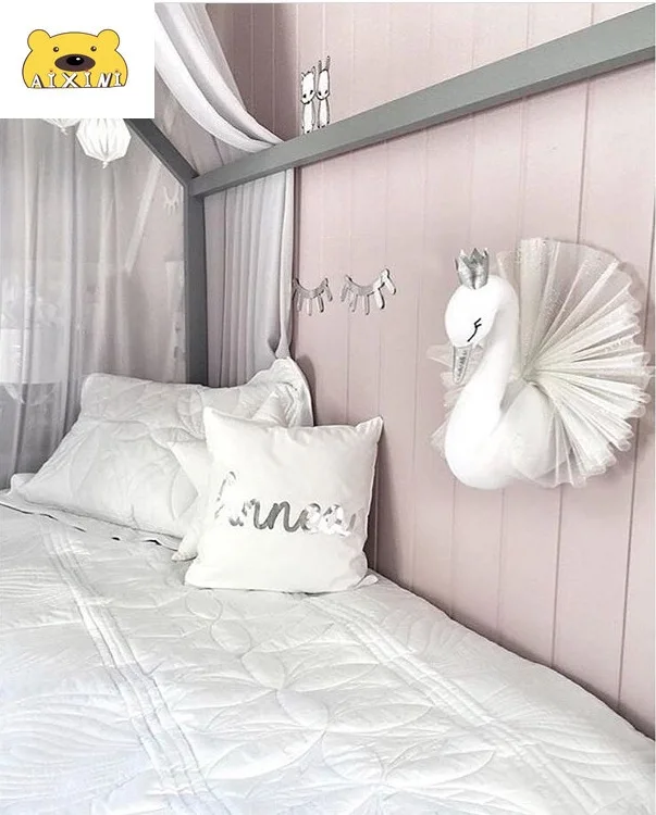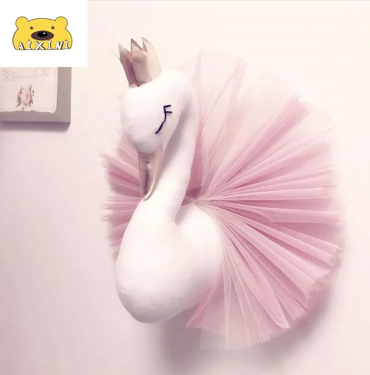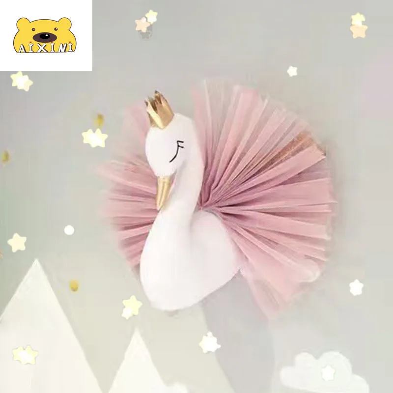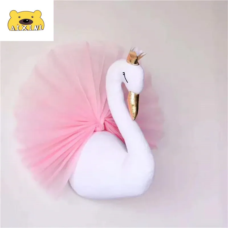 Настенный плюшевый декор в виде головы лебедя, подвесное крепление в виде фламинго, мягкая игрушка принцессы, подарок для маленькой девочки, декор для детской комнаты