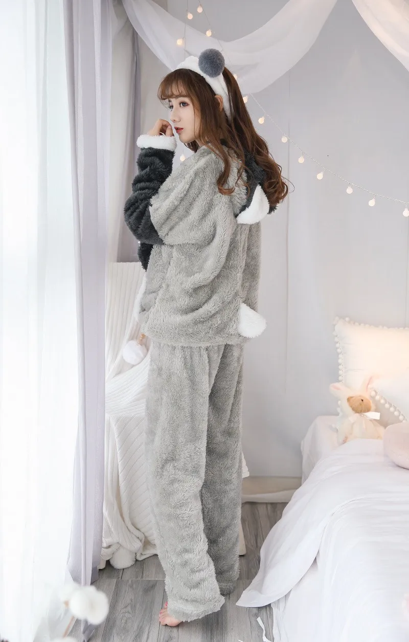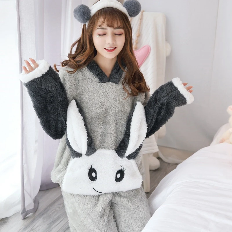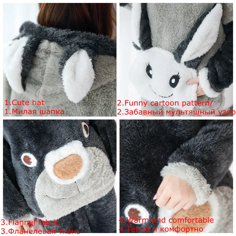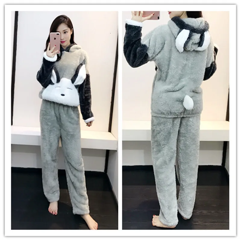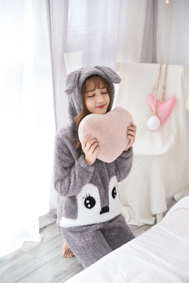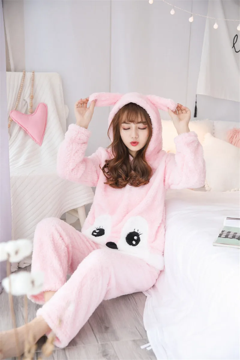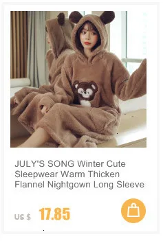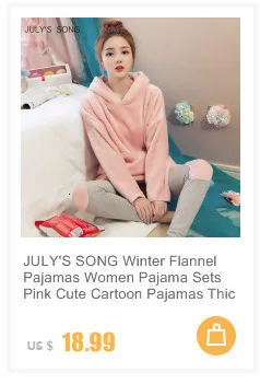Пижама JULY'S SONG Женская фланелевая, зимний пижамный комплект, розовая пижама с милыми мультяшными животными, плотная одежда для сна, повседневная домашняя одежда