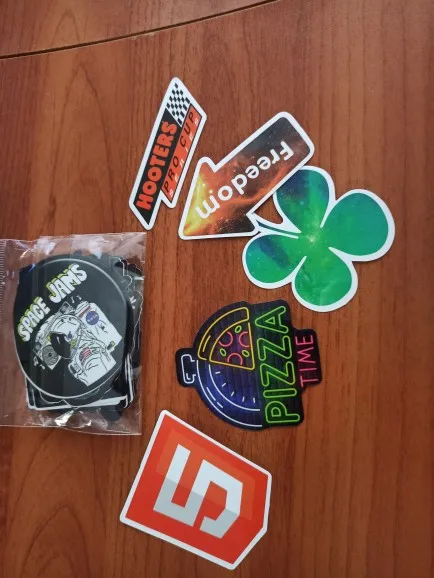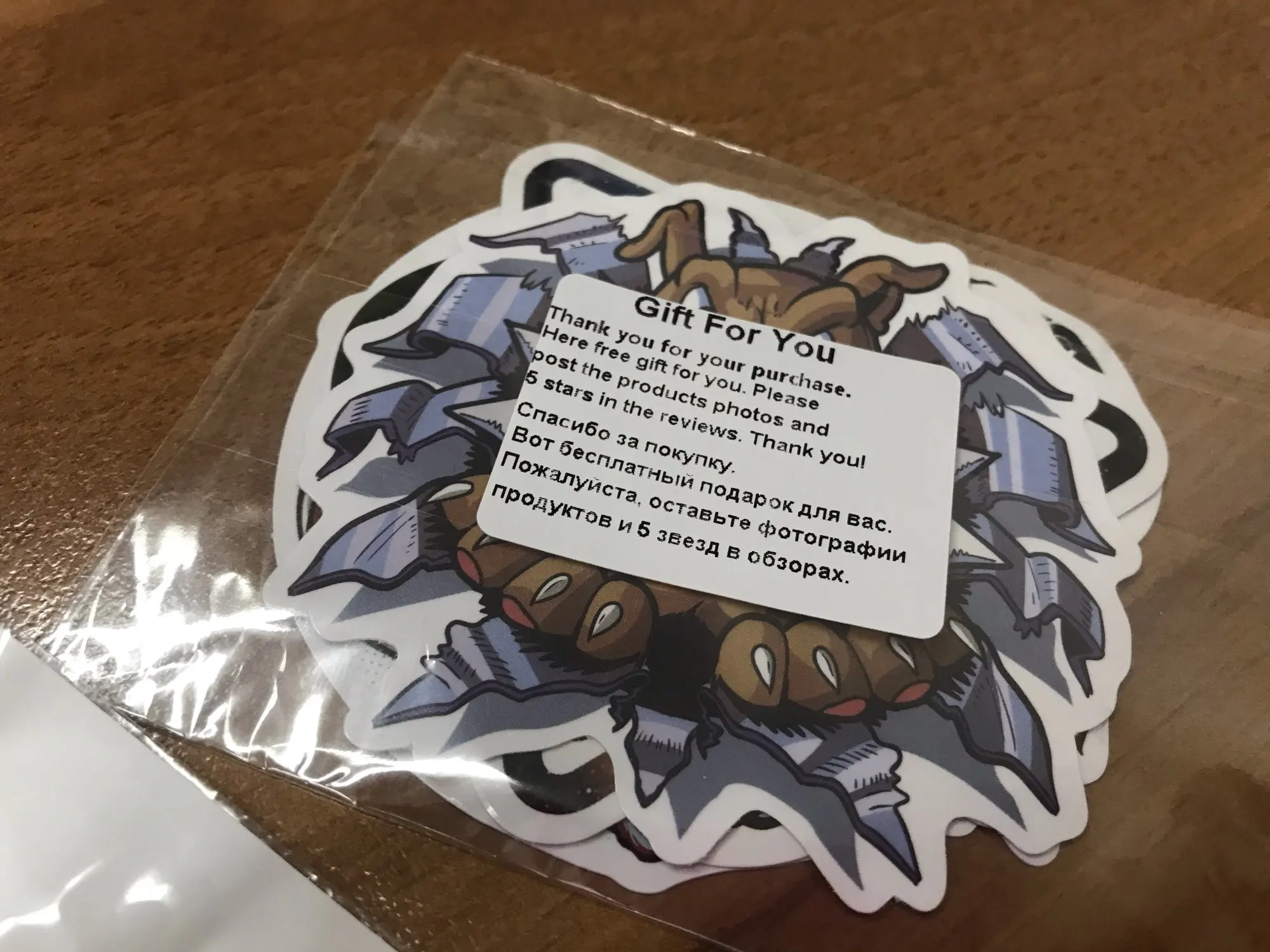 Не первый раз заказываю у этого продавца. Стикеры отличные, честный пвх, четкая и яркая печать, клеятся хорошо и намертво. В этот раз докинули пять стикеров в подарок ещё, видимо за то, что заказал два пака разом. По доставке обычно, около месяца. Разве что в этом паке почему-то один стикер не доложили, ну да всякое случается.