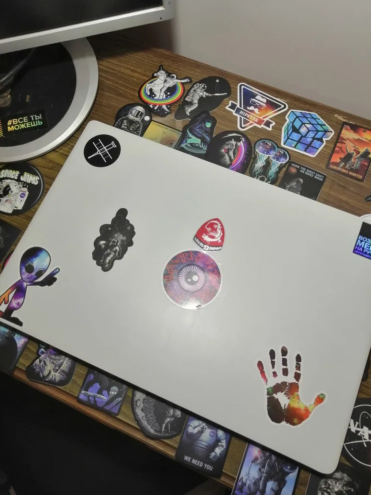 Наклейки прикольные. Брал ребёнку на ноут. Продавец добавил подарок пять белых наклеек. Респект.