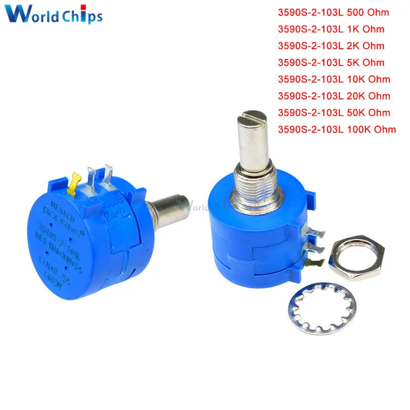 Прецизионный многооборотный потенциометр серии 3590S-2 3590S, 10 колец, регулируемый резистор + 10-оборотный Счетный циферблат, Вращающаяся ручка 6,35 мм