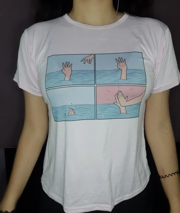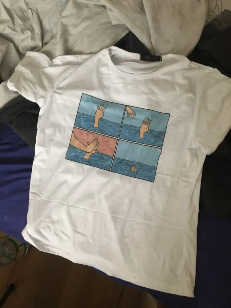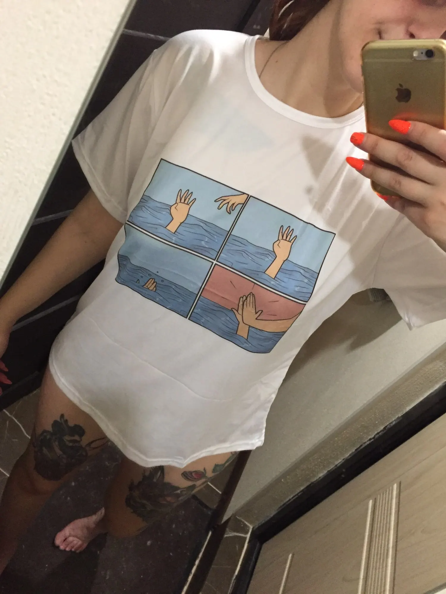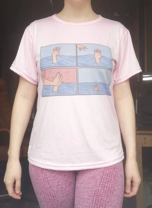 Неплохая футболка, особенно для такой цены. Качество полиэстер, как и сказано в описании, картинка чёткая, яркая, никаких претензий. Но, конечно, с размерами определённо проблема, я девочка ростом 158 см, и вот на фото можно увидеть как смотрится на мне САМЫЙ БОЛЬШОЙ размер из имеющихся у продавца. Это, наверное, единственно, что прям расстроило. В целом к телу приятная, несколько стирок спокойно пережила, никак не испортилась (не села, не выцвела, не посерела, и не появились катышки).