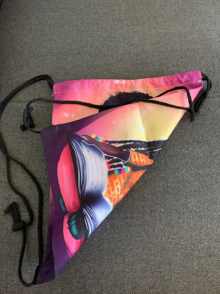Очень прочный и хорошего качества. Единственным недостатком использованного материала является то, что сумку не легко подключить (у вас очень сильно тянут струны к сумке, близкой к тому, чтобы получить). Кроме того, пакет не гладкий, но продолжает его жестко. Однако я очень доволен этим товаром, и моя дочь гордилась своей красочной и своеобразной сумкой.