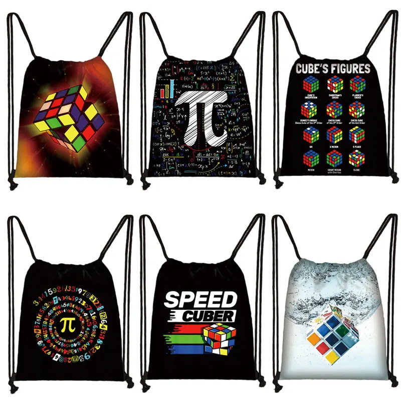Сумка на шнурке с принтом магических кубиков, дорожные сумки для хранения математики, для мальчиков и девочек, школьный ранец, Детский рюкзак для книг