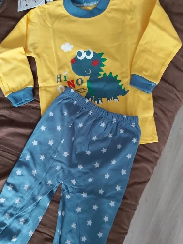 такая милая пижама. Сын надел и отказывается снимать. на 1.9 лет взяла 3 т (с запасом, надеюсь на год хватит)
