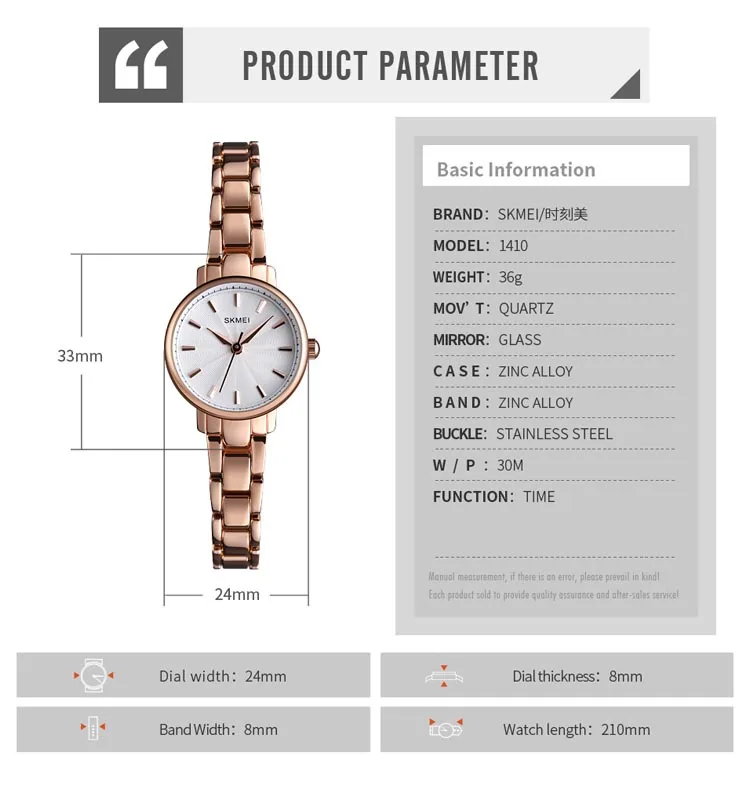 Часы наручные SKMEI женские кварцевые, люксовые простые деловые, с ремешком из нержавеющей стали, для девушек, 1410