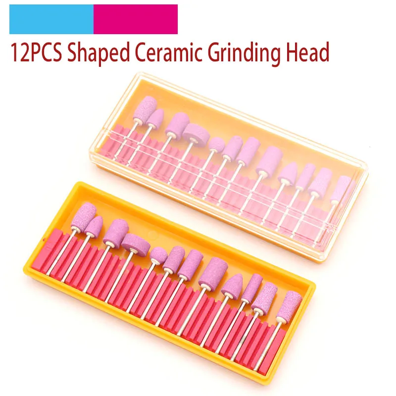 12 шт. в упаковке, Керамика s Полировочная шлифовальная насадка для ногтей сверла Наборы электрических точек Керамика бит машины посвященный шлифовальный станок Инструменты для ногтей
