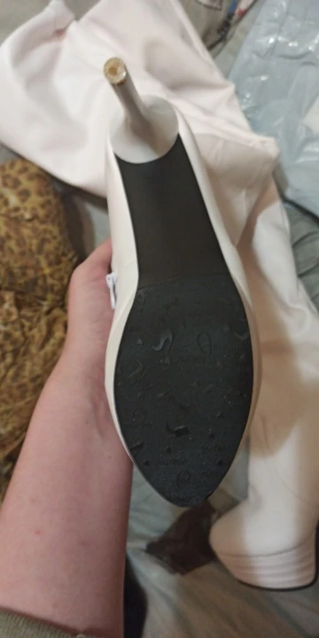 Немного широковаты в щиколотке, но в целом отлично сидят на средней полноты ногу. На рост 177 чуть выше колена. Размер соответствует. Запаковано прекрасно, дошли в идеальном состоянии. Каблук мог бы быть и поустойчивее, но набойки хорошие.
