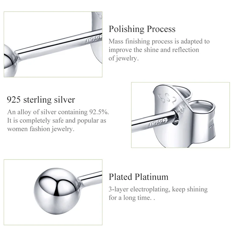 Серьги-гвоздики женские из серебра 925 пробы с маленьким шариком