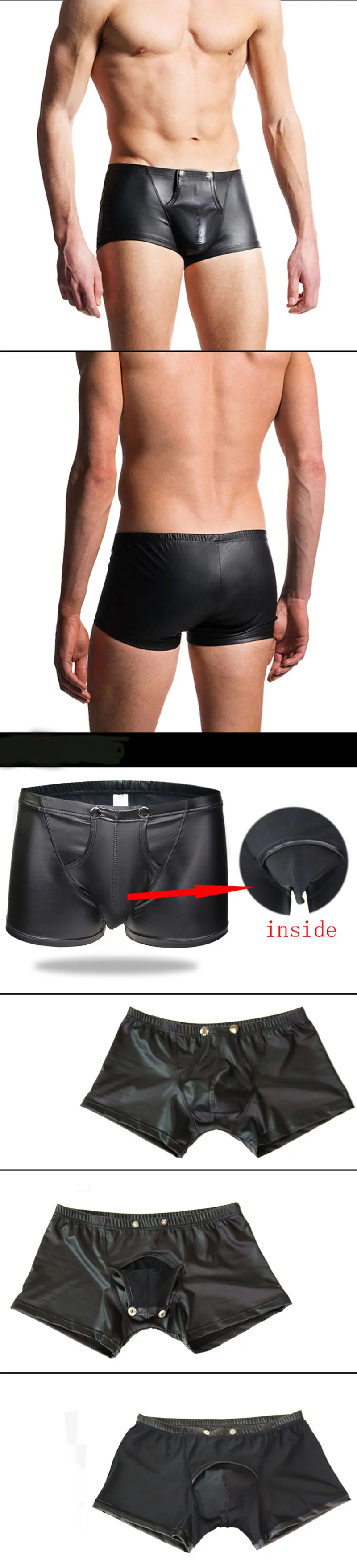 Сексуальные мужские боксеры из искусственной кожи, выпуклый U-образный чехол, блестящие боксеры, нижнее белье, красивые мужские боксеры для пениса, женское нижнее белье F10