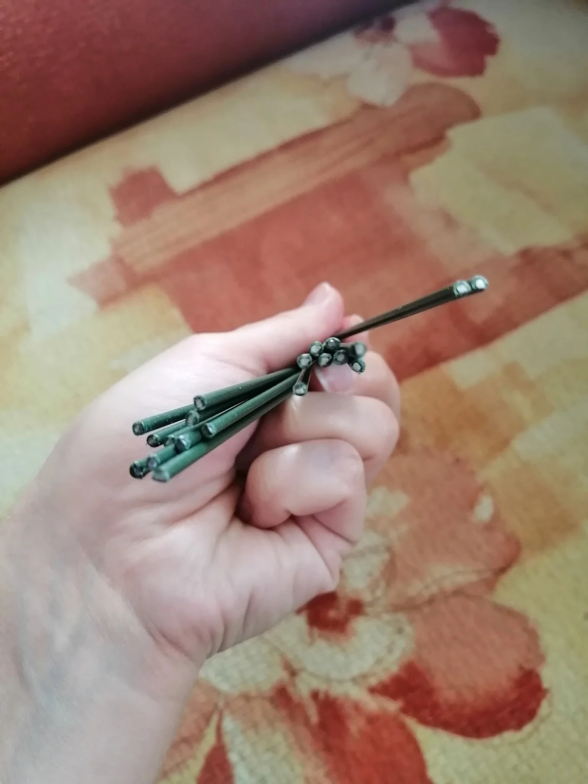 Прочная, гнётся, но не сильно, запаха нет, ровно 20 штук, как я и заказывала. Единственное, я не обратила внимание на диаметр, для моих целей проволока толстовата, придется заказывать другую, но это мой косяк. А этой проволоке я найду другое применение, качество хорошее =) Заказ до Москвы доехал за месяц.