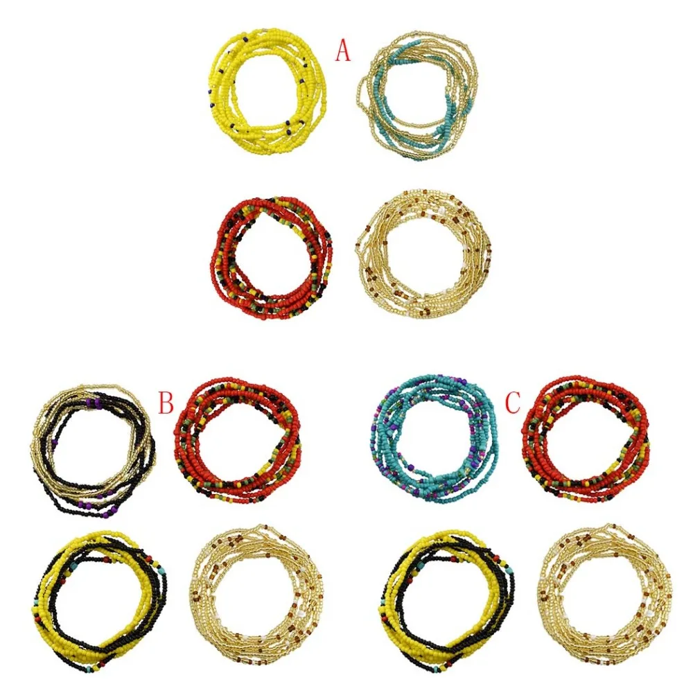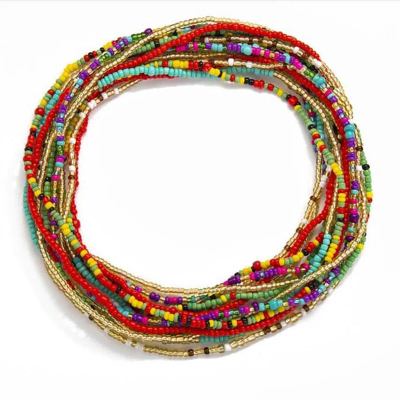 Богемная Этническая пикантная пляжная цепочка на талию, цепочка для живота, африканское племя, цветное полимерное украшение для пирсинга тела с бусинами #2 #30, 12 комплектов, сумка