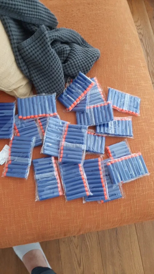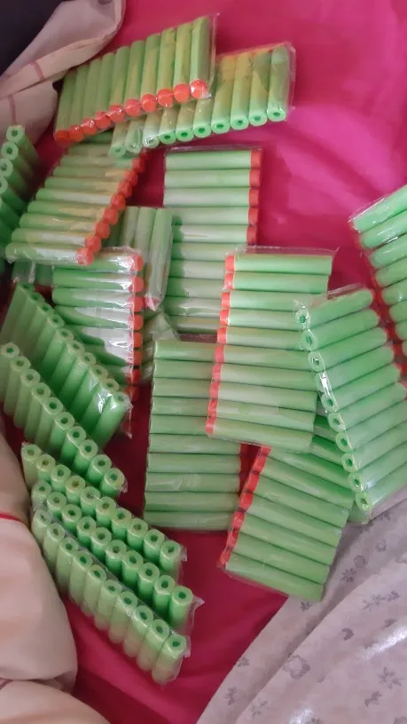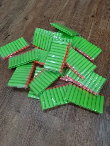 Отличные патроны, 200 штук, все на месте. Подходят к оружию Nerf. Наконечник немного более твёрдый, чем у оригинальных патронов, но нам это не мешает. Мелкий доволен как слон. Как растеряет, буду покупать еще))