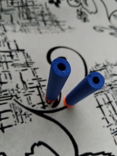 Наконечник, судя по всему, сделан из полиэтилена. На ощупь пластик как пластик - абсолютно никакой упругости. Летают просто несравнимо лучше оригинальных дротиков - "куча" стала раз в 6-7 меньше. Упаковка отстой: просто смотаны в мягкую обёртку, из-за чего около трети дротиков потеряли свою форму. Доставили мерзкой 5post службой. Комментарий кассира из пятёрочки: "млять, всю семью шатала того, кто эти посылки придумал". Хорошо подошли для нерф альфа страйк из перекрёстка.
