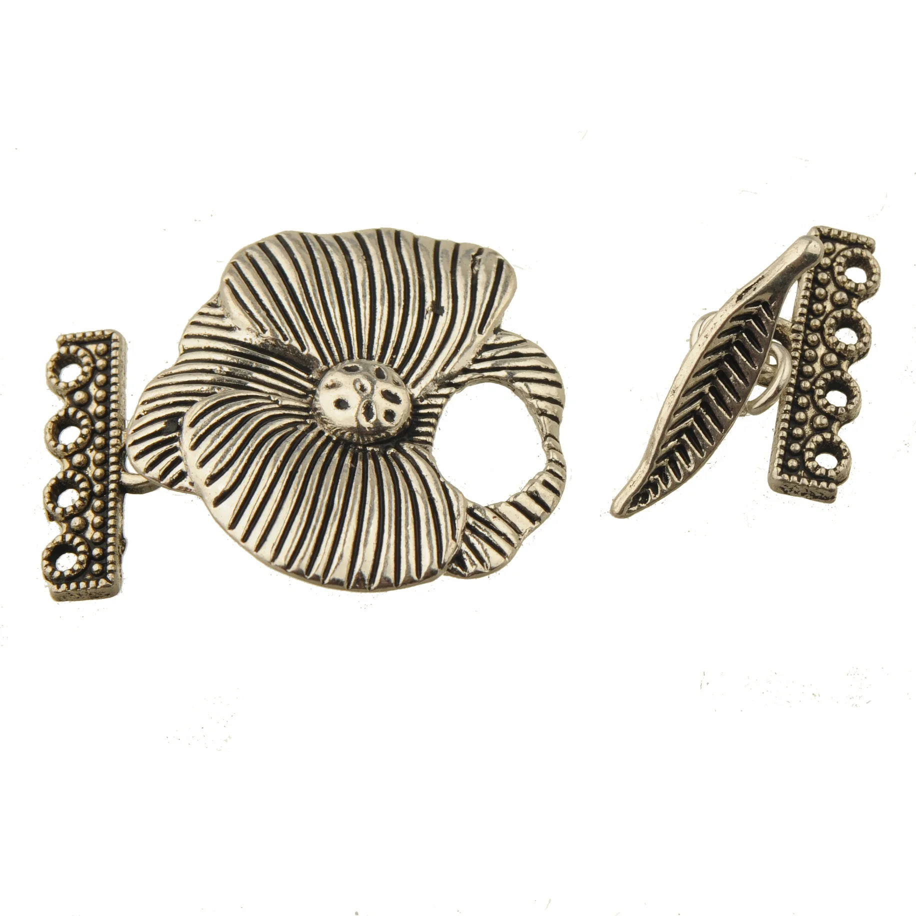Большие застежки в виде цветов, подходят для нескольких браслетов «сделай сам», винтажные серебряные треугольные лотосы, 3/4 отверстий, Ювелирная фурнитура ручной работы, металлическая 5 комплектов