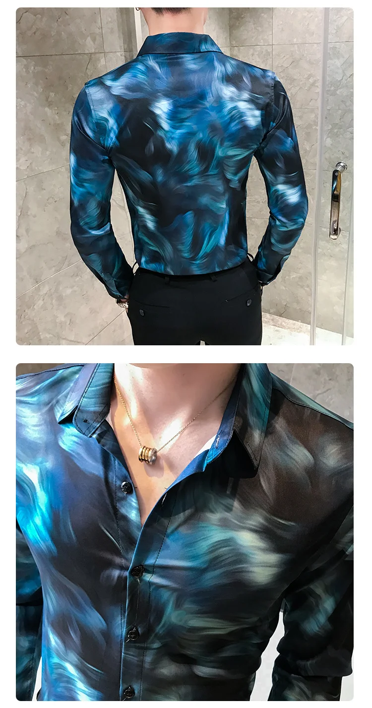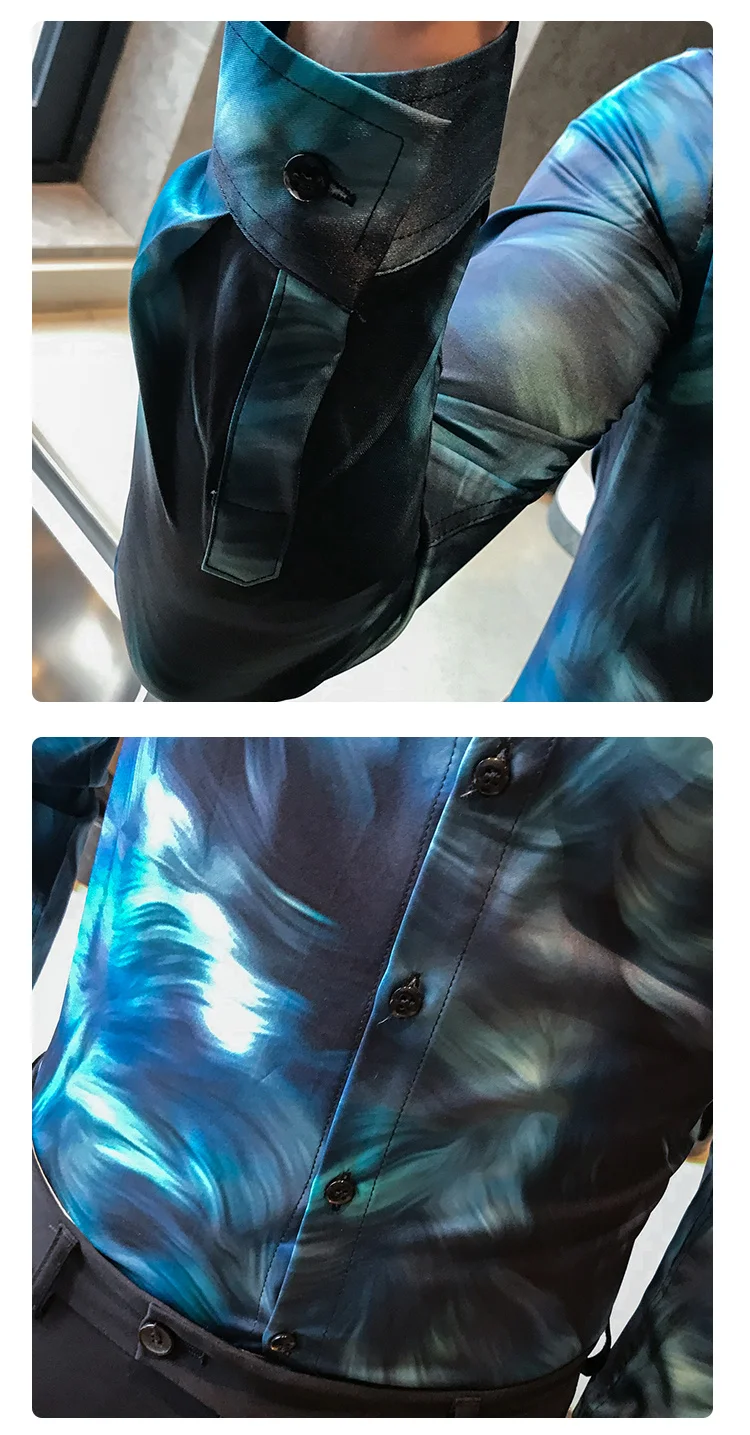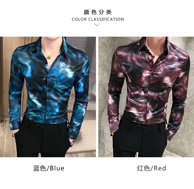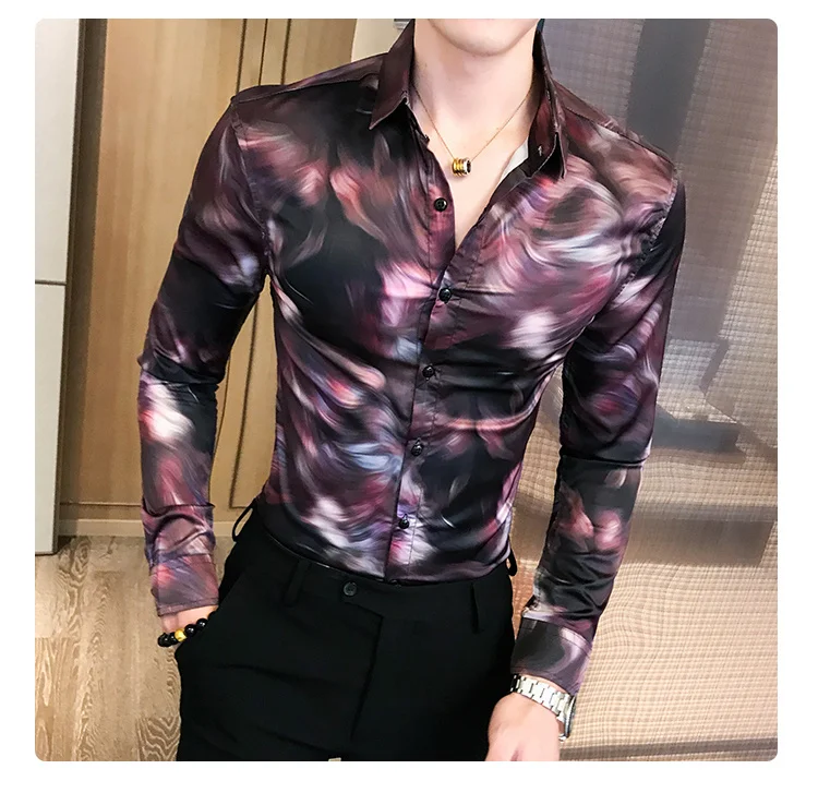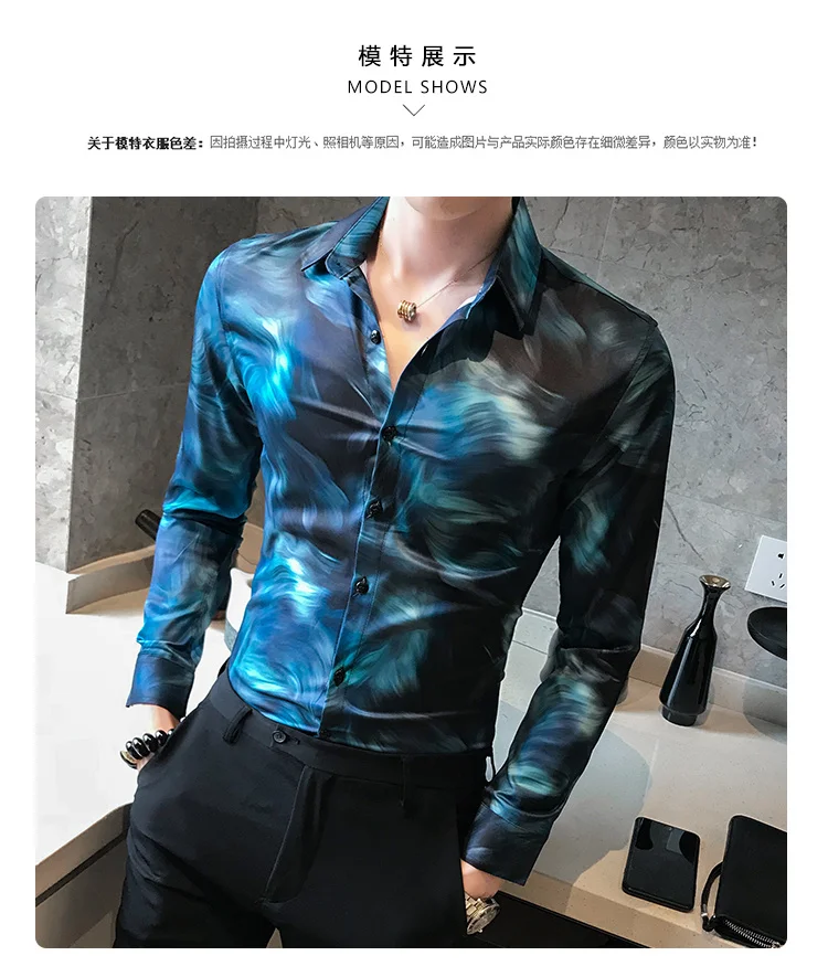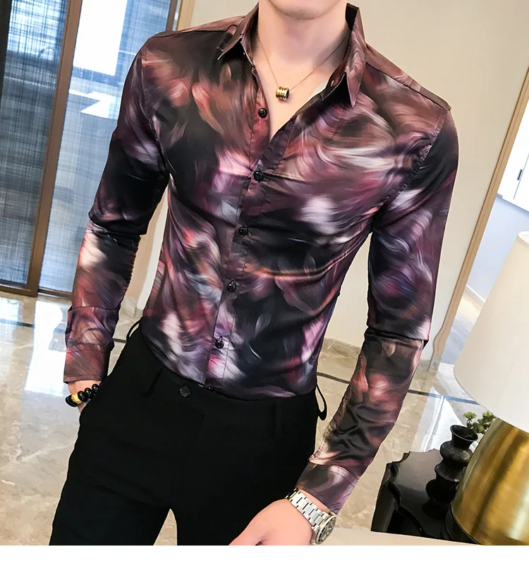 Осенняя мужская рубашка с длинным рукавом и красивым принтом в британском стиле, новая модная повседневная приталенная рубашка, вечерние рубашки, Camisa Homem