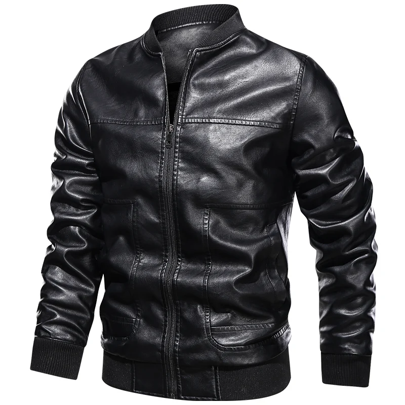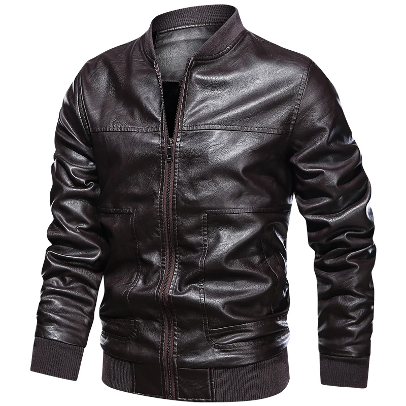 Мужская кожаная куртка-бомбер, коричневая деловая куртка с воротником-стойкой, Осень-зима M-4XL