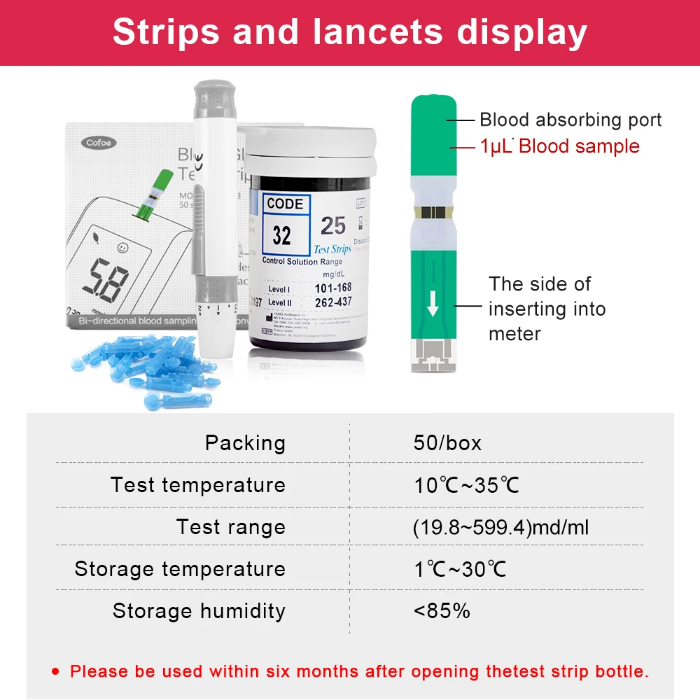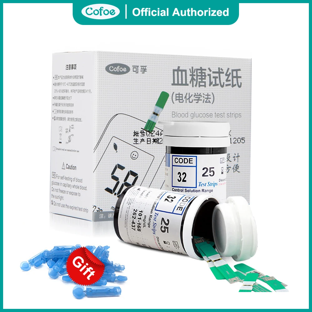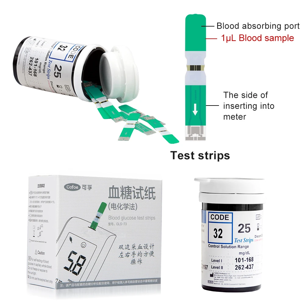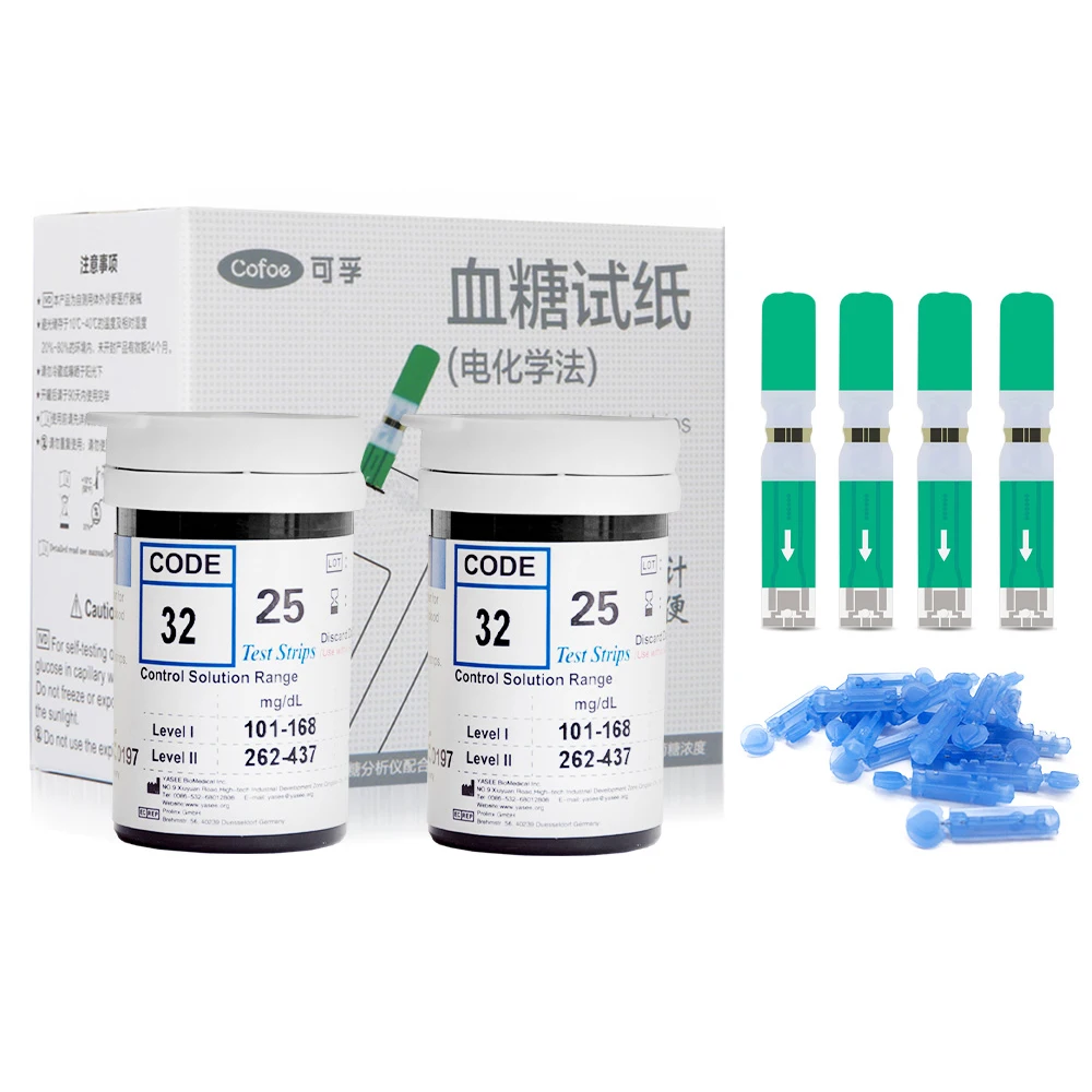 Тест-полоски Cofoe Yiling mmoll для диабета, глюкозы в крови, медицинские, без глюкометра, диабетические тестовые полоски, тест-полоски, ланцет, игла, анализ крови