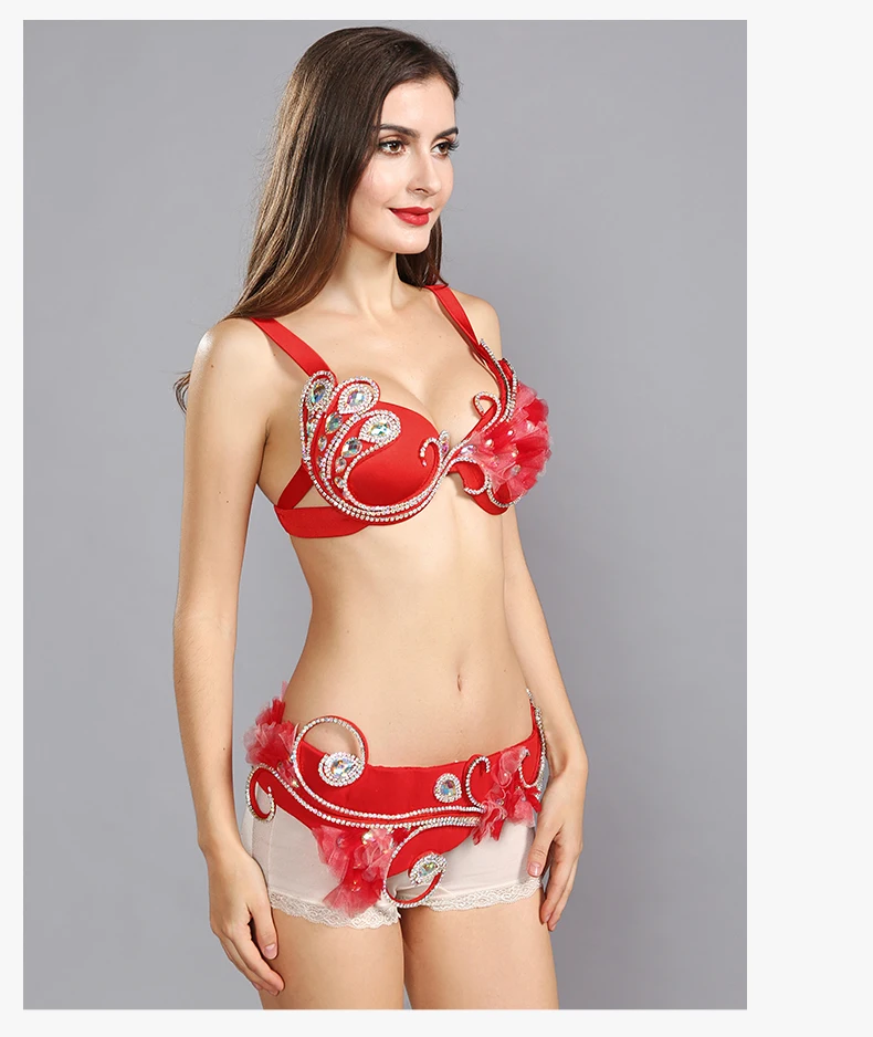 Карнавальный костюм для танца живота, комплект из бюстгальтера и ремня для танца живота, одежда для выступлений, танцевальный костюм Стразы