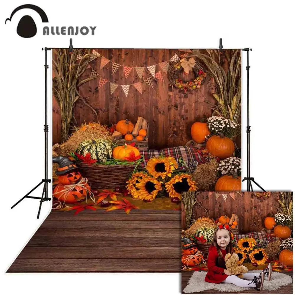Allenjoy Хэллоуин фоны Осенняя Тыква Подсолнух сарай деревянный пол флаги День рождения баннер детская фотобудка