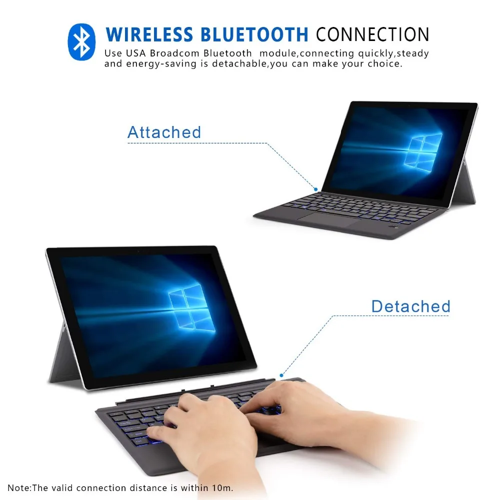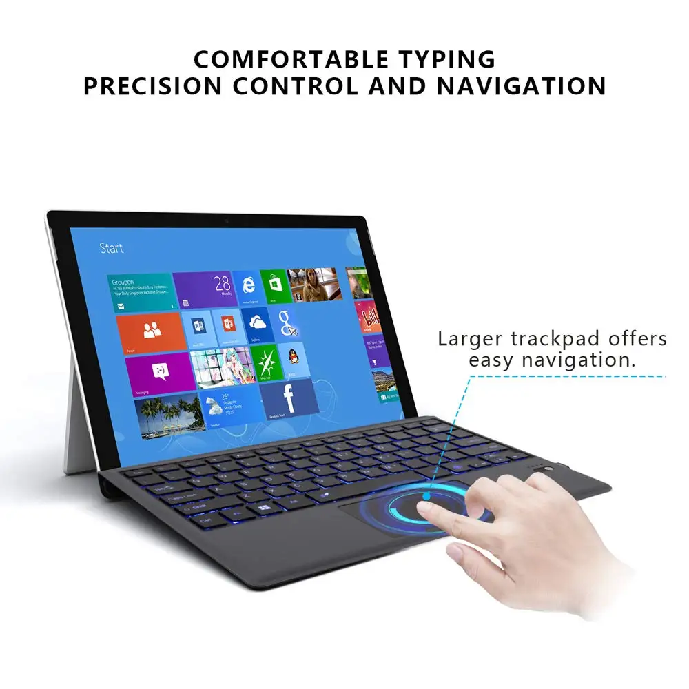 Ультратонкая клавиатура для Microsoft Surface Go, Bluetooth-клавиатура с трекпадом, 7-цветная светодиодная подсветка, портативная, для Surface Go, 10 дюймов