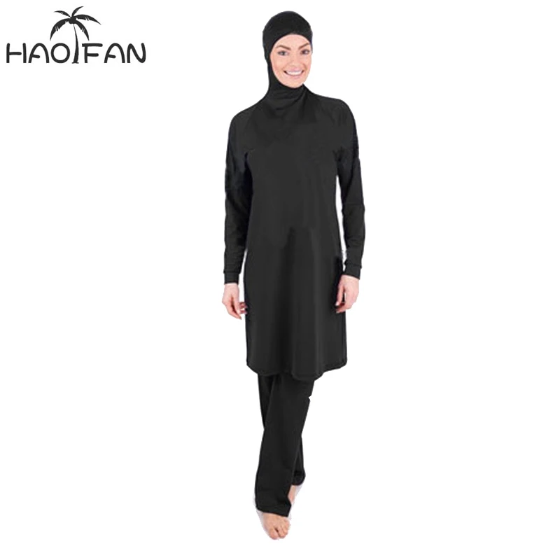 HAOFAN скромные костюмы для плавания, женская пляжная одежда Burkini, черная мусульманская одежда для плавания с полным покрытием, 2 шт.