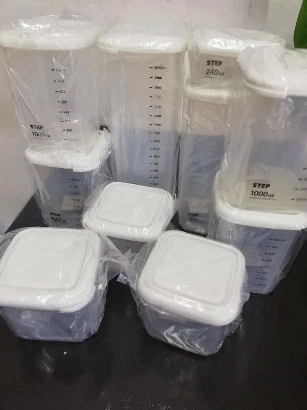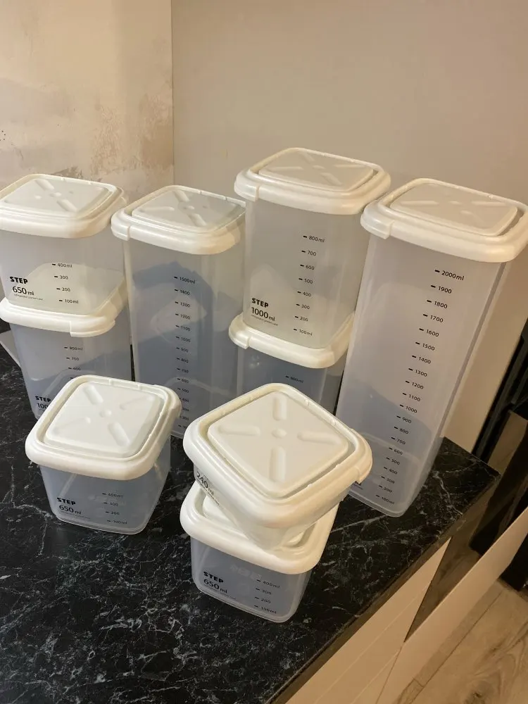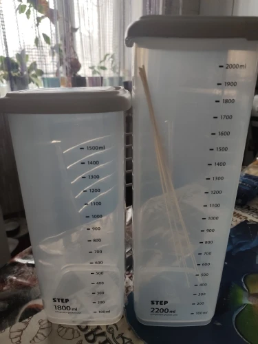 Контейнеры хорошие, качественные, штабелируются между собой, вставляются друг на друга в пазы и никуда не съезжают. Крышки плотные. Всё в целости доехало, было хорошо запаковано. Запах после 1 мытья исчез. Очень не хватает контейнеров объёмом 1200 мл. Стандартный пакет гречки или рис не помещается в контейнер 1000 мл. 1200 было бы идеально.
