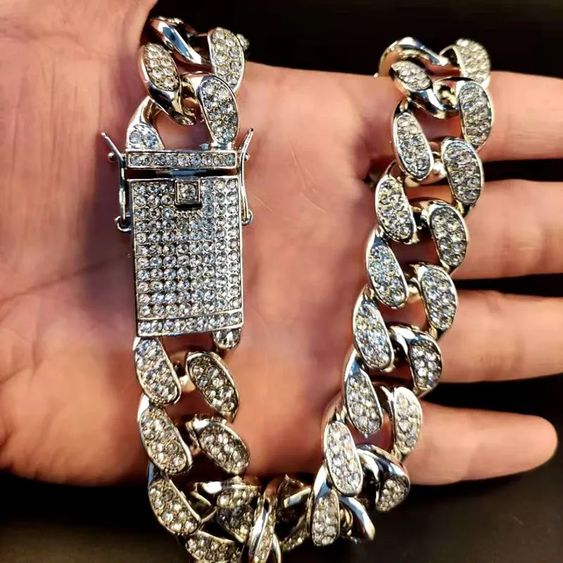 Колье мужское из кубинской цепи Майами, ожерелье из сверкающей цепи 18-28 дюймов, 20 мм, украшение в стиле хип-хоп, Ювелирное Украшение