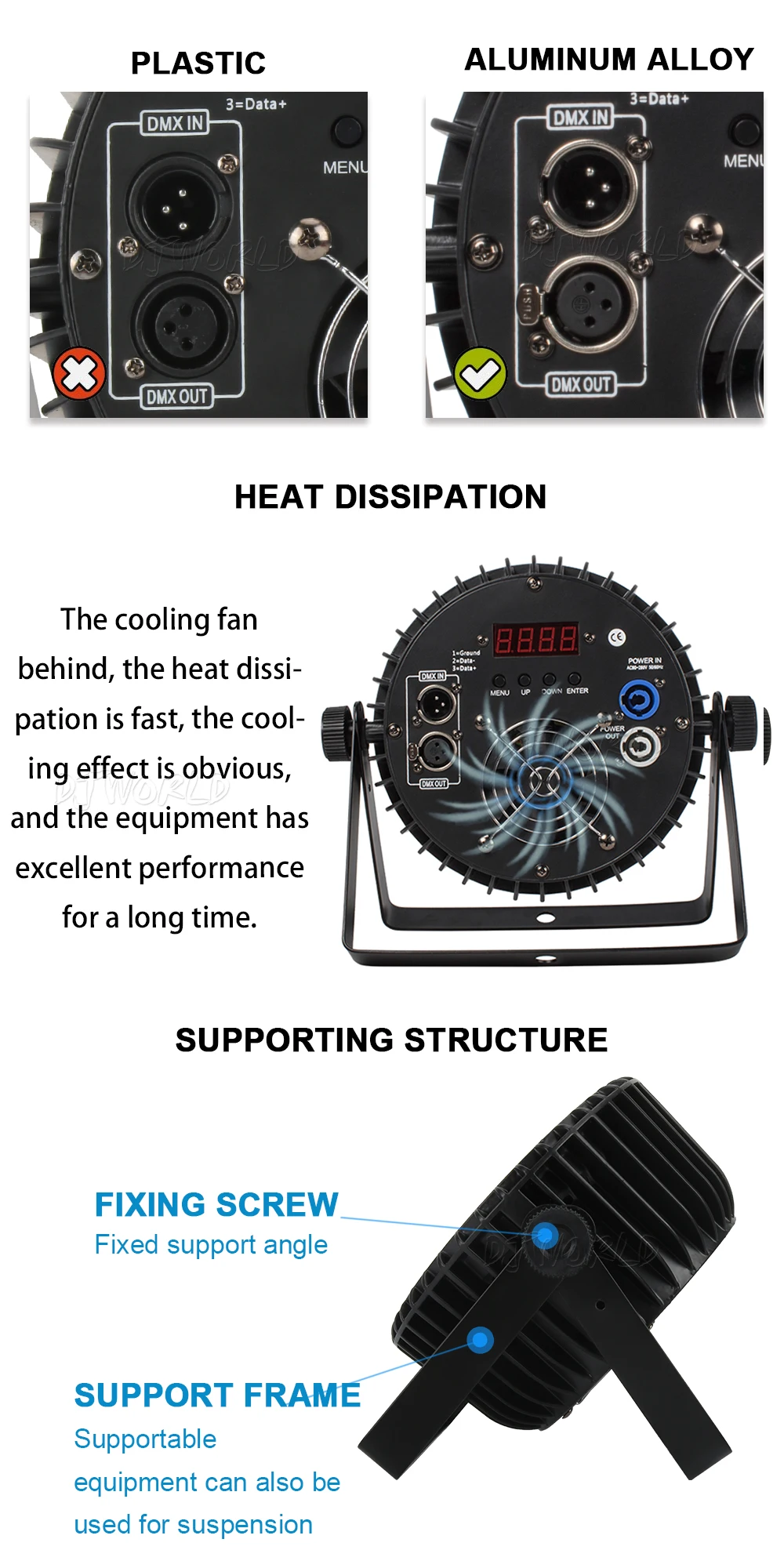 -Входное напряжение: AC90--240V,50-60 Гц.-Общая мощность: 216 Вт, 234 Вт-LEDSource: RGBW 4в1 цвет, RGBWA + UV 6в1 цвет-DMX-управление-каналы: 4/8 DMX каналов, 6/10 DMX каналов-Режимы работы: DMX512, автозапуск, звуковое действие, стробоскоп, автономный и мастер/раб, с богатыми передовыми встроенными программами.-Длительный срок службы светодиодов: более 60000 часов-Контрольный сигнал: международный стандарт DMX512.-Гарантия: 1 год.-Размер изделия: 20х20х8 смСертификат: CE & ROHS & UL & SAA.-Штепсельная Вилка: чтобы отправить вам для удовлетворения требований штепсельной вилки, штепсельной вилки ЕС, штепсельной вилки США, штепсельной вилки Австралии, штепсельной вилки Великобритании и так далее.-Использование помещений: сцены, ночные клубы, дискотеки, отели, магазины, семейная вечеринка на день рождения, подходит для ди-джеев и т. Д.