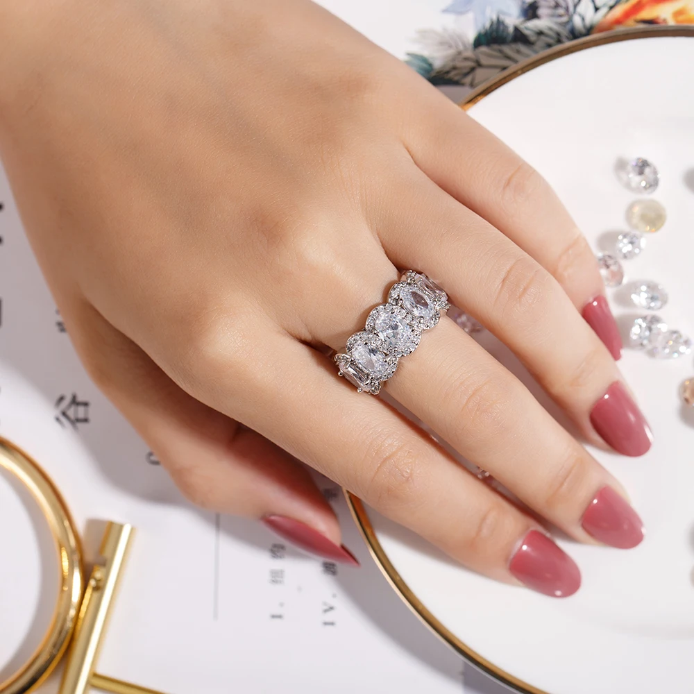 Обручальные кольца из серебра 925 пробы с имитацией алмаза, обручальные кольца с камнями, Размер 5,6,7,8,9,10