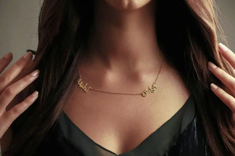 Ожерелье с двумя именами на заказ, мужское, женское, с арабским именем