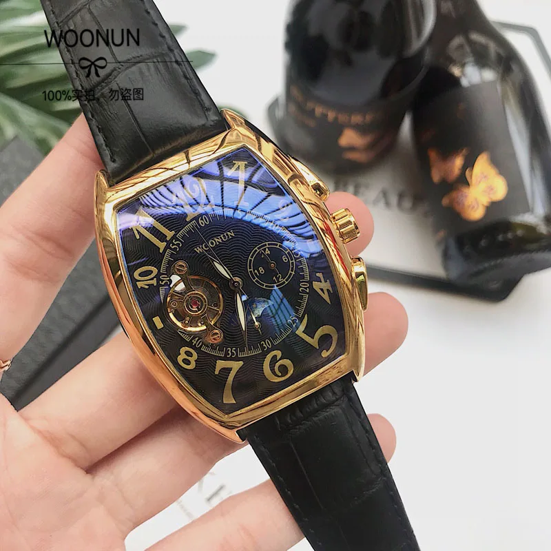Часы наручные мужские автоматические, модные роскошные механические водонепроницаемые с Лунной фазой