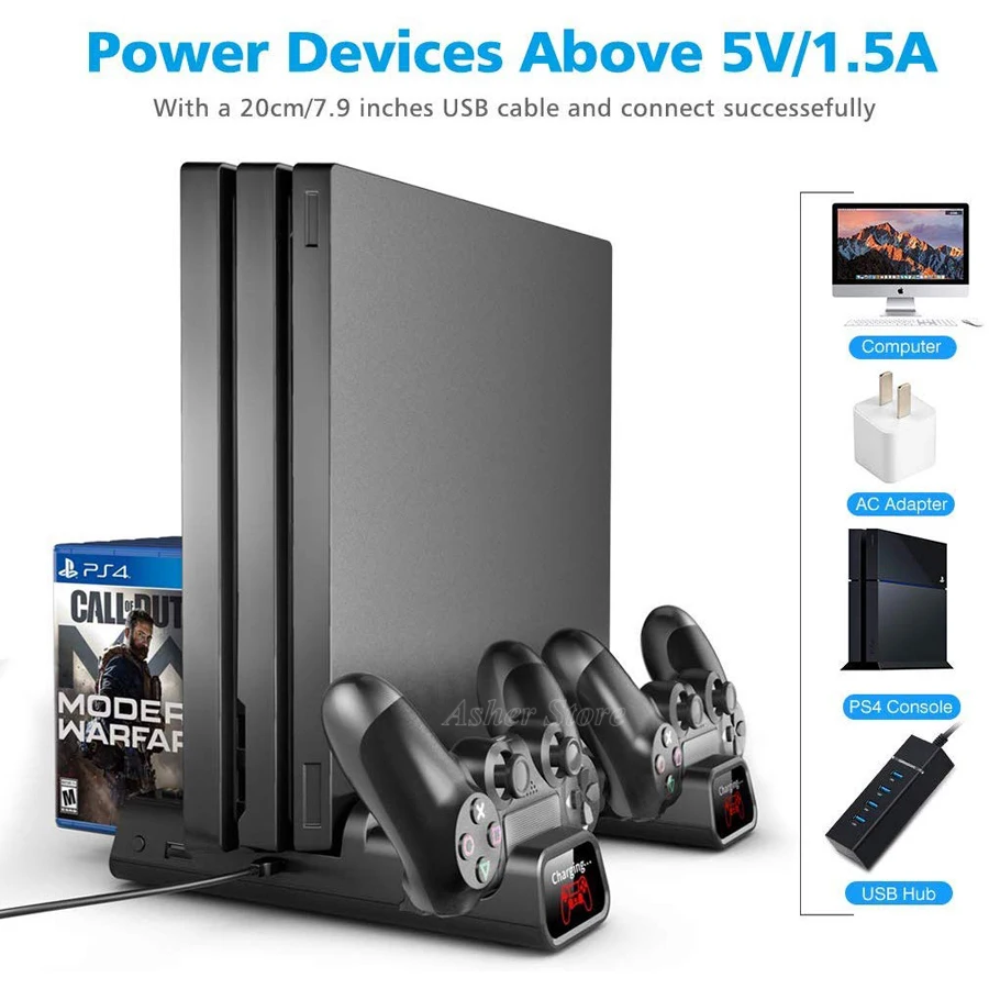 PS4/Pro/ТОНКАЯ вертикальная подставка двойной контроллер зарядное устройство зарядная док-станция охлаждающий вентилятор игровой держатель для Sony Play Station PS 4 аксессуары