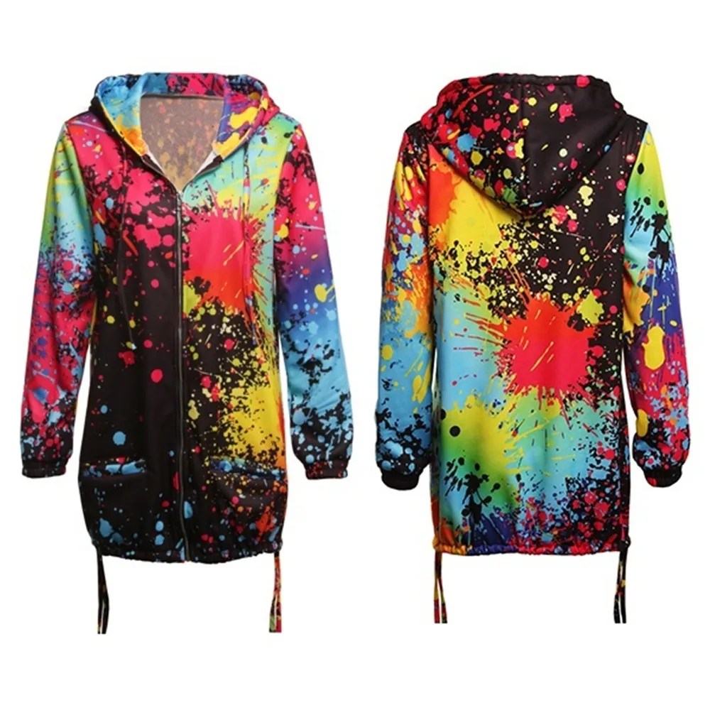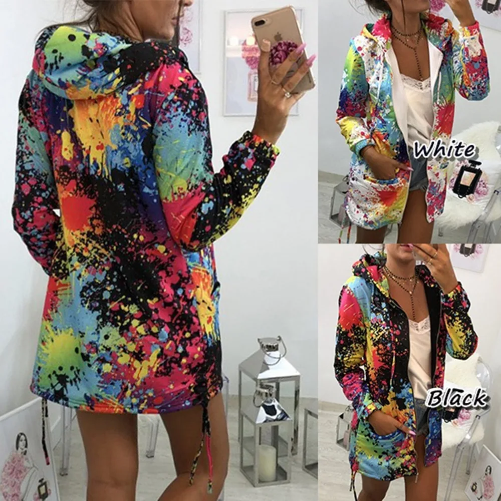 Осенняя Женская куртка, модная женская ветровка, пальто с принтом в виде галстука, верхняя одежда, свитшот, куртка с капюшоном, повседневное пальто с карманами