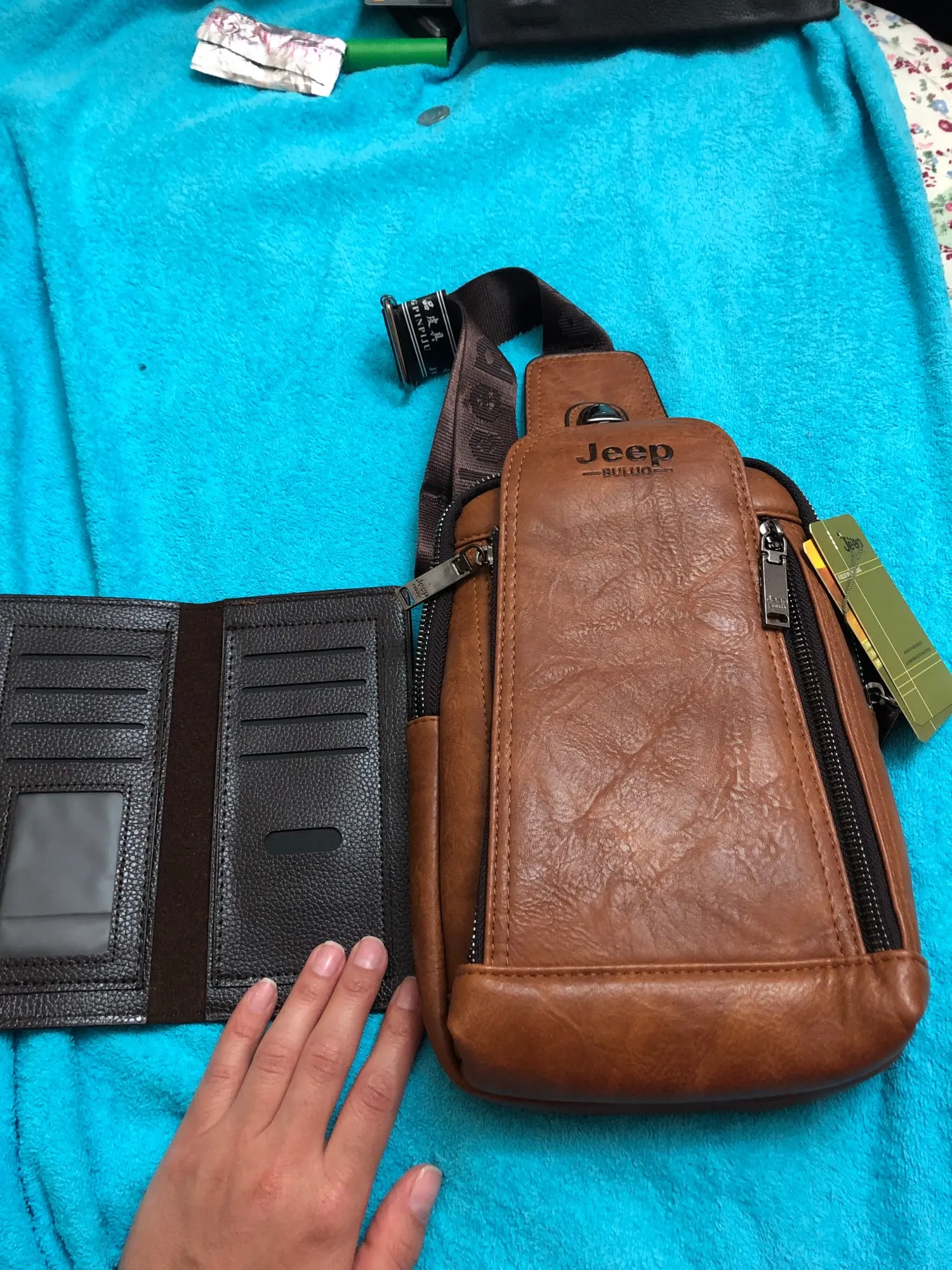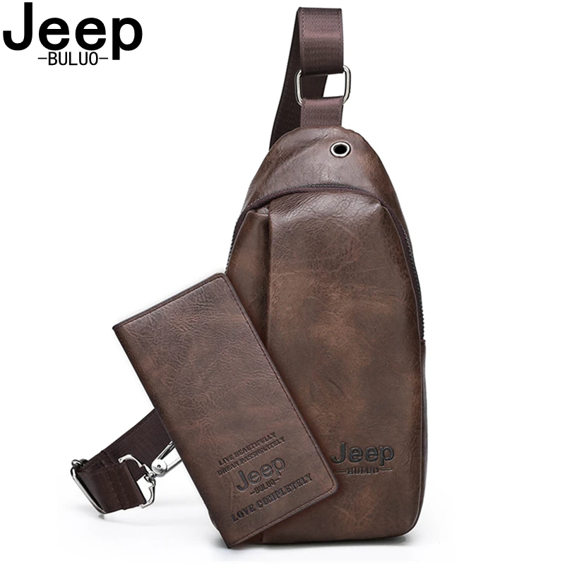 Мужской комплект нагрудная сумка jeep buluo, оранжевая сумка через плечо и кошелек из спилковой кожи, брендовая слинг-сумка, однолямочная кросс-боди сумка, все сезоны