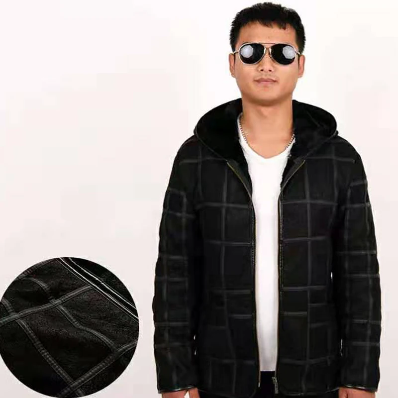 Новинка 2022, теплое мужское меховое пальто с капюшоном, Мужское пальто из 100% натуральной овчины, мужской костюм, кожаная куртка, толстая, размер на заказ