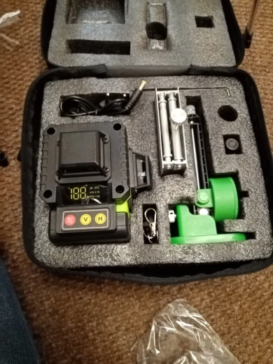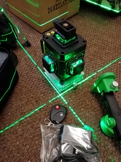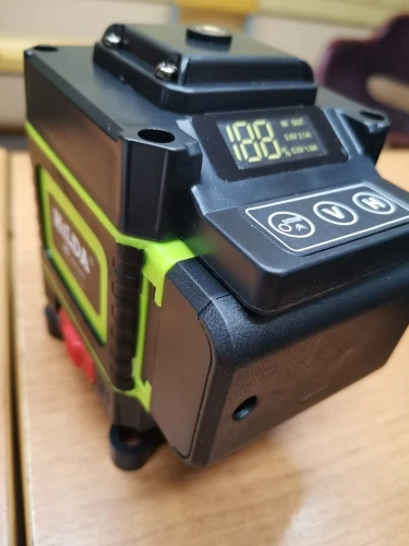 И так пару слов о уровне.. Товар пришёл в течении недели до Краснодарского края . Упаковка хорошая, все целости и сохранности. Сам уровень выполнен скажу так не плохо, пластмасса корпуса на 4- ку, приятная на ощупь без постороннего запаха. И качество сборки тоже приятно удивило. Держатель с очень сильными магнитами, что тоже ни может не радовать. Три уровня настройки на нем, верх - низ, вылет от стенки и поворот на 360 градусов.. Пульт, очень удобно регулировать, так же является плюсом этого уровня. Видимость полос хорошая, даже днем, на фото не так заметно, не передаёт чётко фотография. Что огорчило, так это штатиф, не могу сказать, что он хлипкий, но пользоваться им лучше аккуратно.. Да и пришёл он какой то заезженный, как б/у... Что хочу сказать по итогу, доволен товаром, если кому нужен хороший уровень для бытовых работ, а я использую его в частном доме для строительства, могу рекомендовать смело. В отличии от известных брендов, где цена будет на порядок выше.
