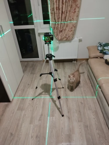 уровень классный, все работает,тринога слегка хлюпковата,но не чего уровень держити ладно,и немного растроилась потому что резьба в самом уровне плохая ,уровень накручиваешь, а он криво встает,немного из-за этого проблемки ,приходится и триногу и настенный держатель поднастраивать ,ну в целом я довольна,и кстати очень удобно что есть пульт в комплекте(правда сначало не поняли почему он не работает,потом выяснилось что разряжена батарейка ,ее заменили и вуаля,все работает),так что продавца рекомендую ,спасибо .