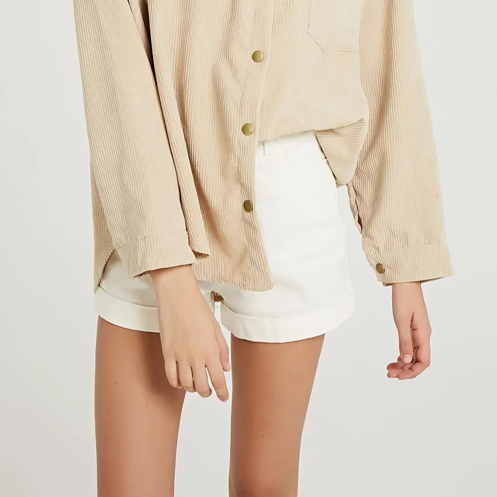 2019 wixra модная одежда классические свободные женская мастхэв стильная повседневные гардероб сплошной шорты короткие высокая талия завышенная посадка карманы бежевый цвет молочный белый Деним джинсовые