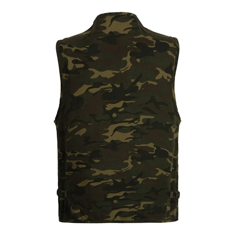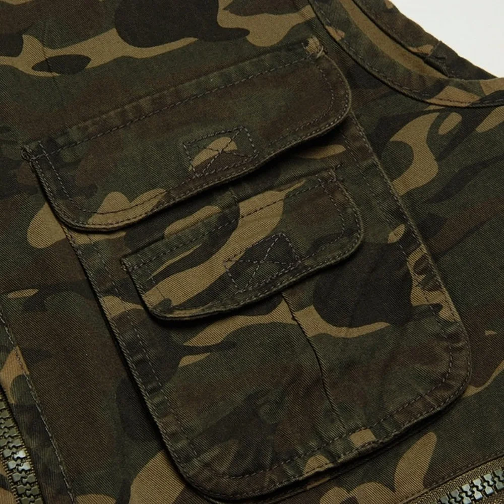 Военная Мужская хлопковая камуфляжная повседневная мужская жилетка большого размера с v-образным вырезом, рабочая куртка без рукавов с множеством карманов, уличный жилет