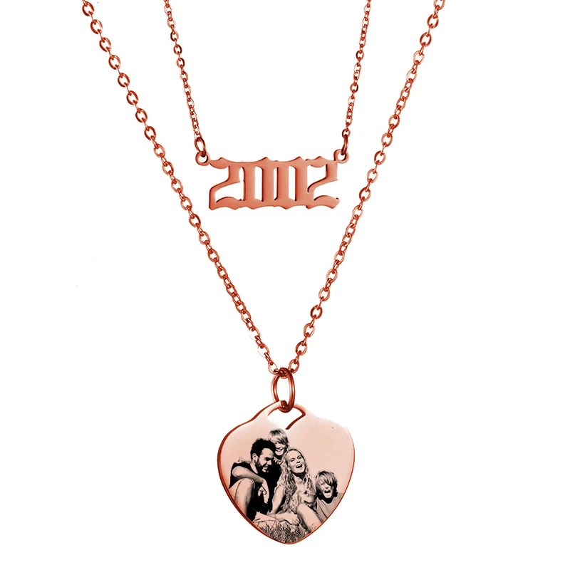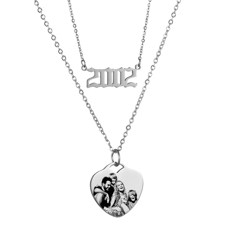Изготовленный на заказ номер года ожерелье выгравировать с возможностью нанесения собственной фотографии логотипа Надписи из нержавеющей стали для украшений ручной работы чокер с подвеской в форме сердца 1980-2019 на день рождения, подарок на Новый год