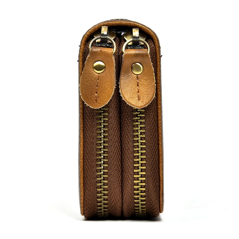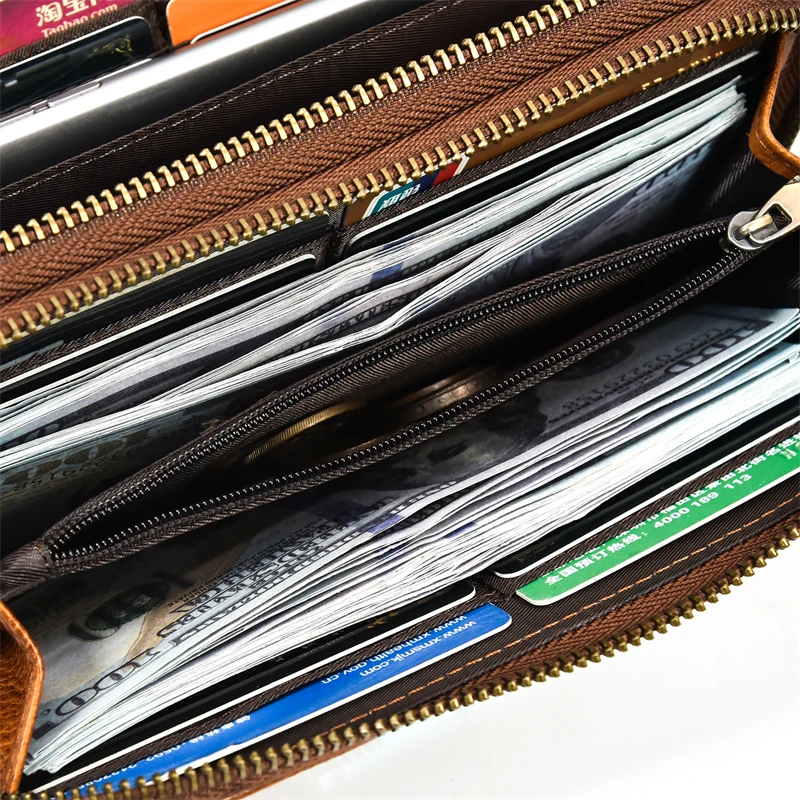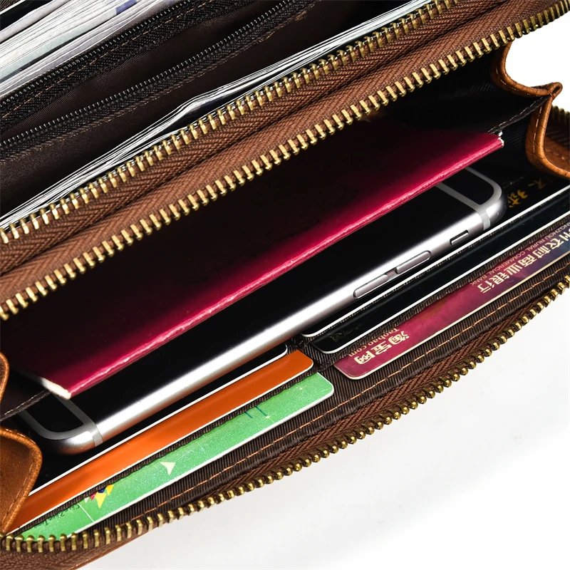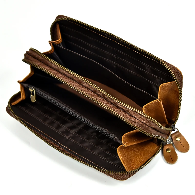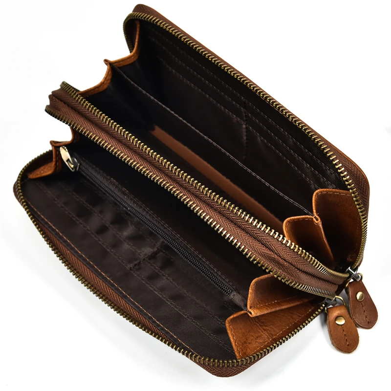 Супер качественный кожаный клатч длинный кошелекМатериал: кожа Crazy Horse/100% натуральная кожа/100% коровья кожаДвойная застежка-молния: 19,5 см x 10 см x 3,5 см (Д * Ш * В)Непромокаемые Полуботинки на молнии; Размеры: 18,5 см x 9,5 см x 2,5 смЦвет: коричневыйВес:Двойная молния около 0,25 кгКошелек с одной застежкой-молнией около 0,2 кгЕмкость: может держать монеты, карты, бумажные деньги, мобильный телефон