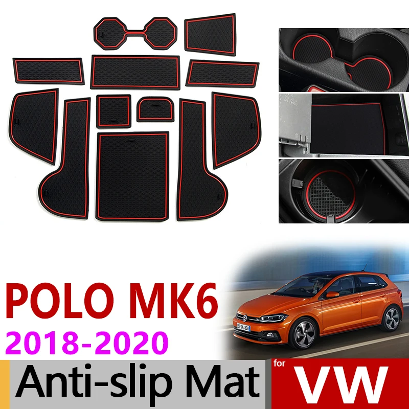 Противоскользящий коврик для телефона, слот для ворот, коврики, чашки, резиновые накладки, коврик для VW POLO MK6 2018 2019 2020 Volkswagen, автомобильные аксессуары, наклейки