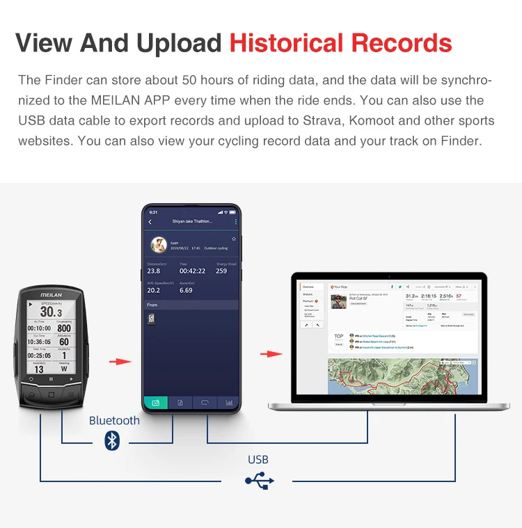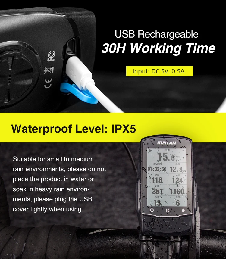 Велокомпьютер Meilan M1, GPS-навигация, спидометр BLE4.0, подключение к монитору частоты вращения педалейч, измеритель мощности (не входит в комплект)
