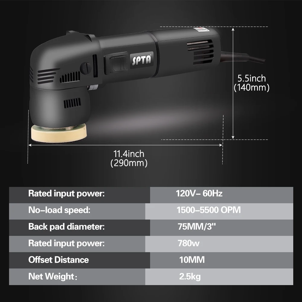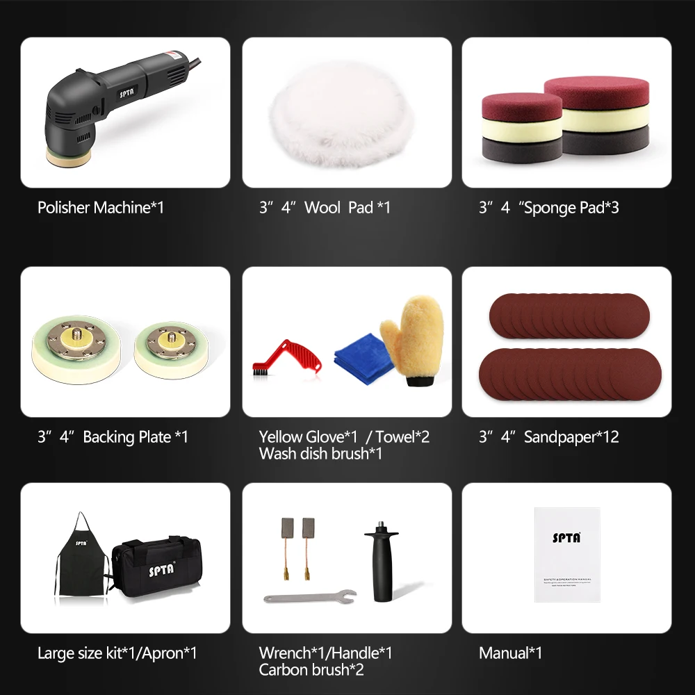 Полировщик автомобильный SPTA, 3 дюйма, 78010 мм, с губкой