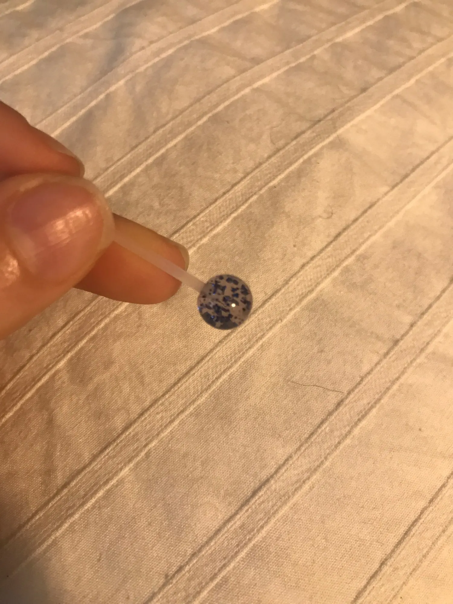 Серёжка отличная, не цепляется, и не мешает. на животик самое то