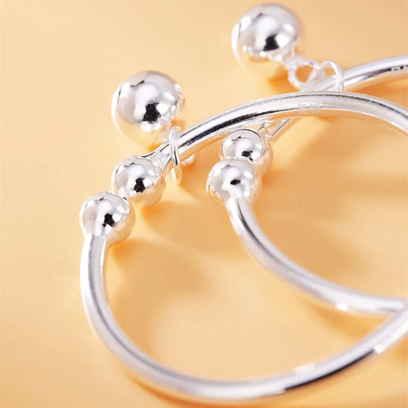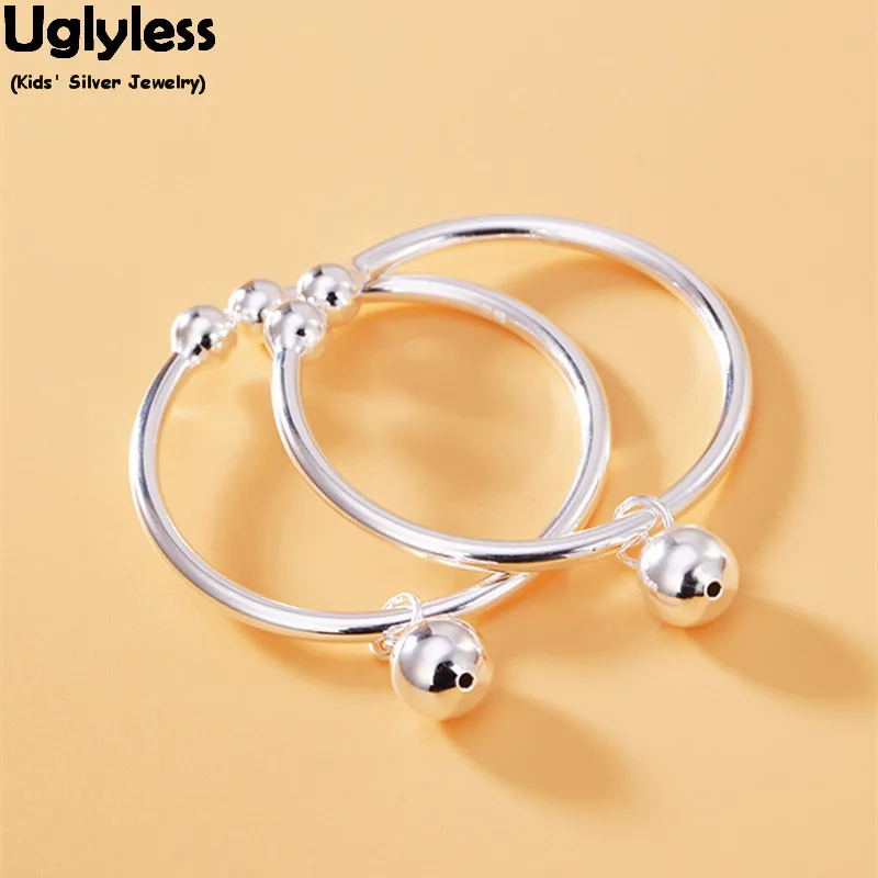 Uglyless 1 пара высокого класса 99.9% Полный Серебряный Браслет для новорожденных детей регулируемые незамкнутные браслеты колокольчики очаровательные браслеты изысканные украшения
