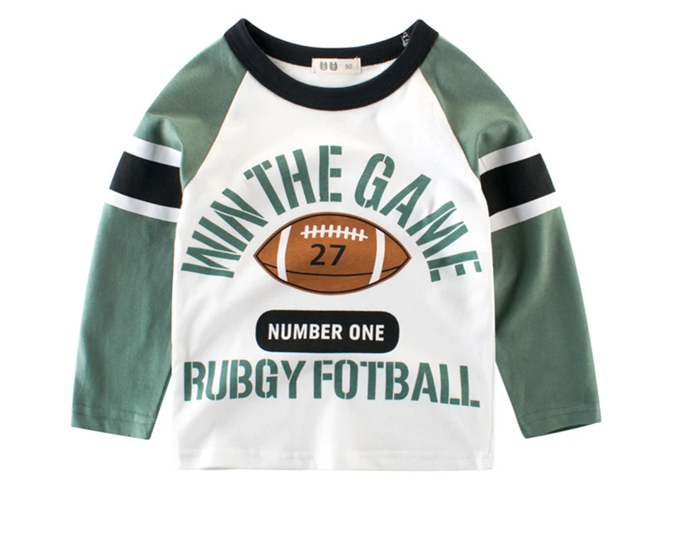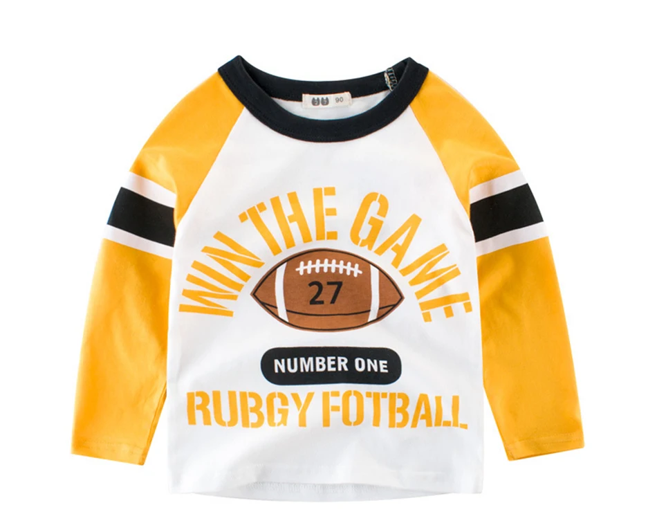 Футболки для мальчиков, хлопковые, с длинным рукавом, с принтом, для регби, футбола, весна, 2019